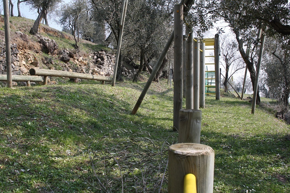 Nel verde degli ulivi è stata predisposta un’area attrezzata per la ginnastica che si può inserire all’interno di un “percorso vita”.